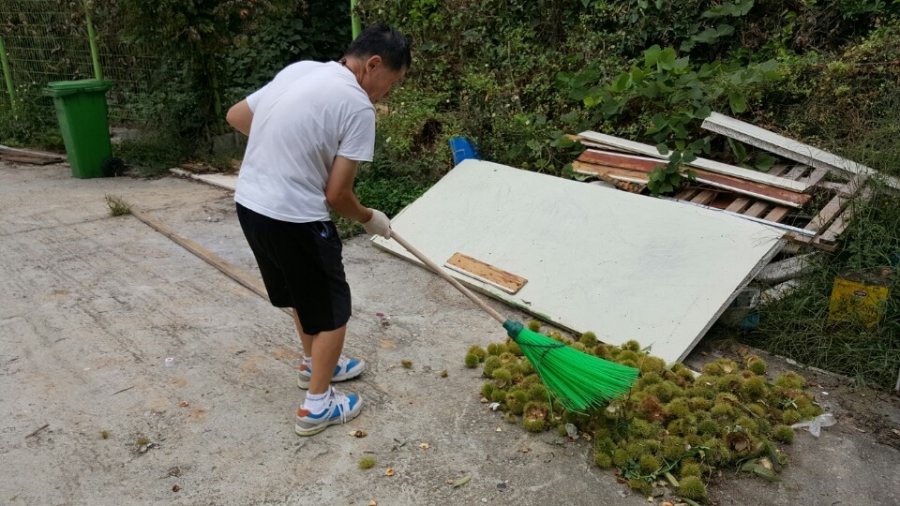 효정 뒷편에 있는 밤 나무 두그루에서 9월 말일경에 밤을 수확 했습니다.