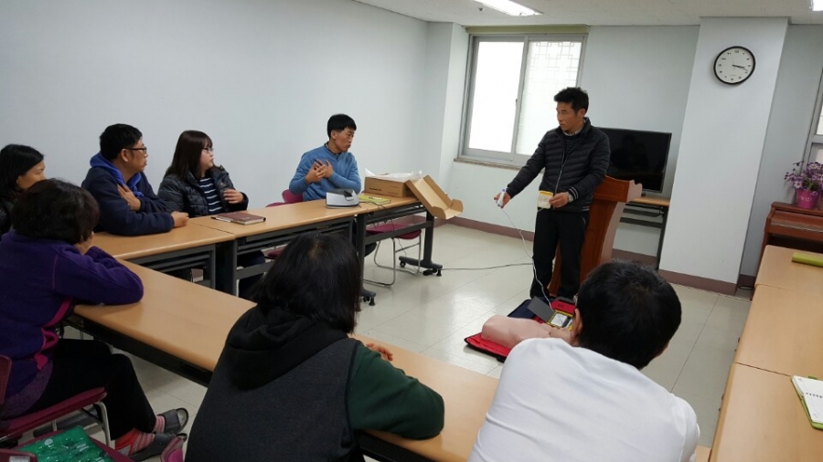 효정에  심장제세동기를 구입을 하면서 심폐소생술과 심장 제세동기 사용법을 직원들이 교육을 들었습니다.