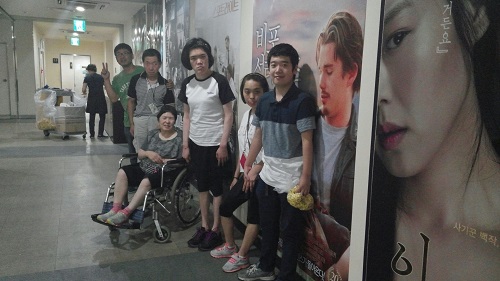 8월 9일은 외부 영화관람 활동으로 롯데시네마에 방문하여 영화를 관람하였으며, 우선 부산행과 인천상륙작전, 덕혜옹주중 이용인들이 보고 싶은 영화를 선택하도록 질문하여 덕혜옹주가 3명으로 많아 덕헤옹주를 관람하였으며, 관람시 예절을 잘 지키며 떠들거나 산만한 행동 없이 조용히 관람하는 모습을 보였으며, 이후 자신이 좋아하는 점심을 골라 점심을 먹는 시간을 가졌으며, 모두가 웃는 모습을 많이 보이며 즐거운 시간이 되었으며, 8월 20일은 원내 지하 강당에서 영화를 관람하였으며, 간식과 함께 영화를 관람 대부분의 이용인들이 몰입하고 관심을 보이며, 소리치거나 박수를 치는 적극성을 보이며 영화를 관람하는 모습을 보임.