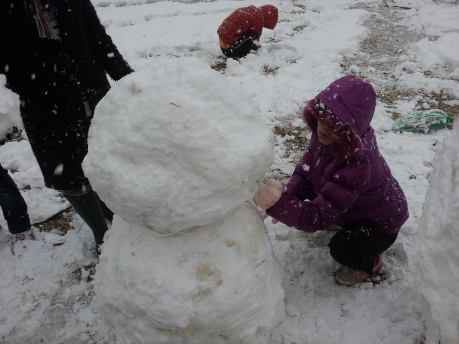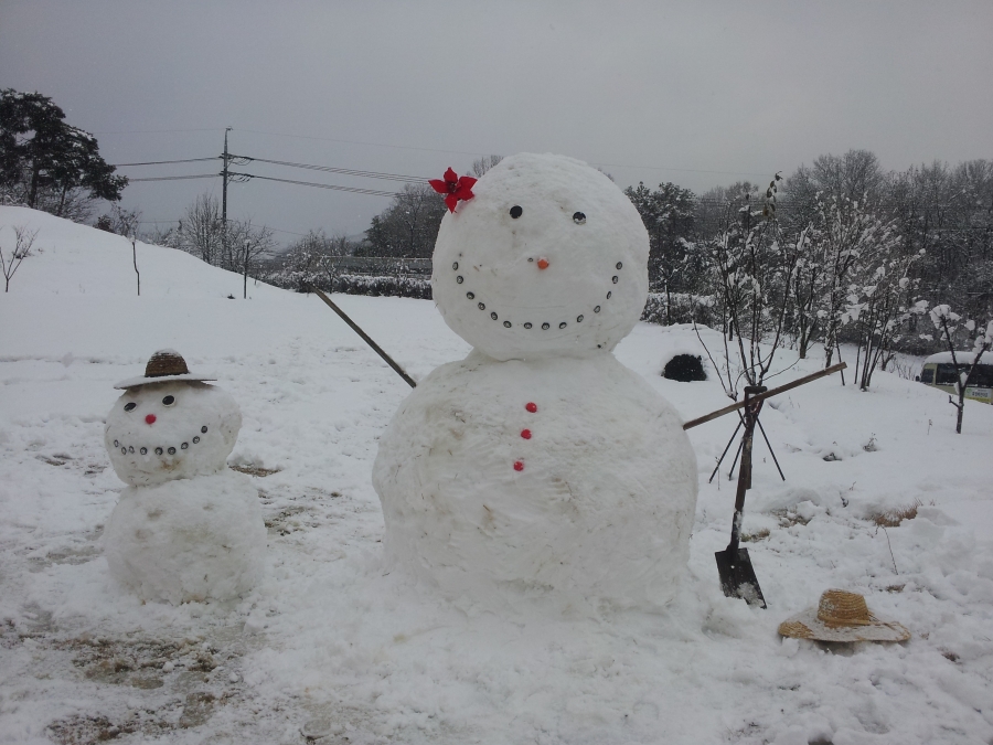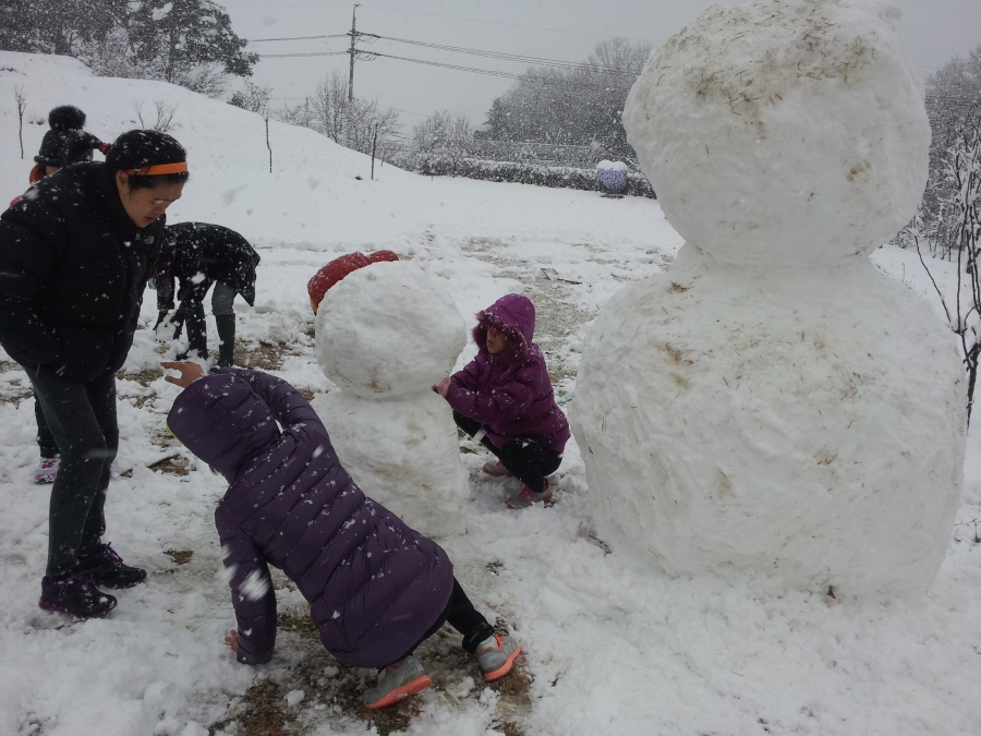 효정 잔디밭에서는 몇명 선생님들과 이용자 분들이 눈 사람을 만들었답니다..