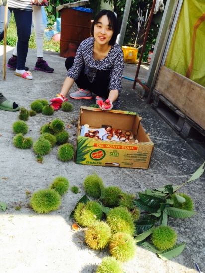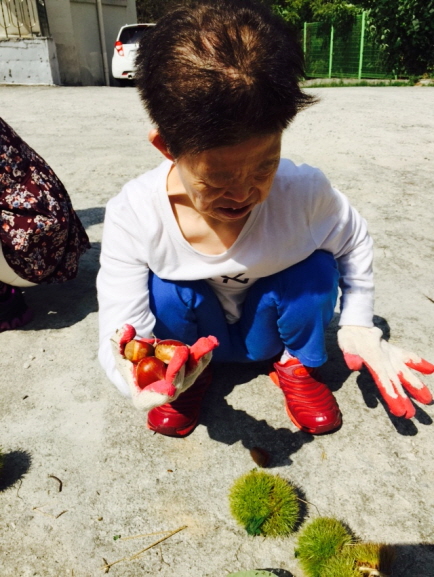 밤이 여물어 많이 떨어지기 시작하여 오늘은 이용인들과 함께 밤 줍기를 해보았습니다~