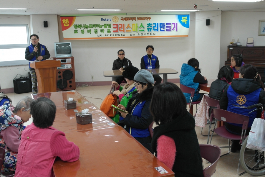 행복나눔e로타리 클럽과 함께하는 크리스마스트리 만들기~^^2014년 12월 6일 토요일~ 행복나눔e로타리 클럽에서 방문해 주셔서 크리스마스 트리만들기 행사를 함께 하였습니다. 트리부터 모든 재료를 준비해오셔서 이용인들과 함께 만드는 작업을 함께 하였는데요~ 너무나도 멋진 트리가 완성되었습니다. 깜짝 선물로~ 공연행사도 함께해주셔서 크리스마스 분위기를 느낄 수 있었습니다. 로비에 모여 다함께 점등식 및 캐롤을 부르며 즐거운 시간을 보냈습니다~ 귀한 시간 내주시어 방문해주신 행복나눔e로타리 클럽에 다시한번 감사의 인사를 드립니다~ 앞으로도 좋은 인연으로 우리 이용인들과 함께 좋은 추억 만들어가길 바래 봅니다^^