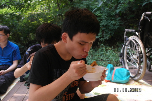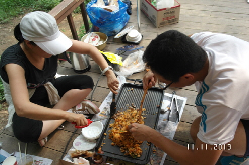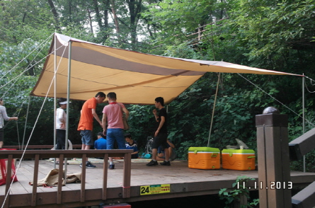 묵리계곡에서 물장구와 맛있는 수제비와 국수를 점심으로 먹고, 바로 자연휴양림으로 이동하여 타프라는 그늘막을 이용자님들과 주위분들의 도움으로 멋있게 완성하여 시원하게 오후시간을 보냈습니다. 맛있는 삼겹살과 소시지, 가장 중요한 볶음밥을 먹을 때 이 세상을 다가진 느낌이 들었습니다. 숲의 피톤치드를 얻어 마음까지 건강해졌으며, 웰빙으로 이용자님들 모두가 행복한 하루를 보내실 수 있어서 즐거운 하루였습니다. 모두들 수고하셨습니다. ^^