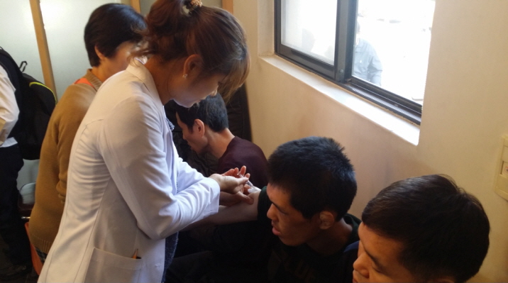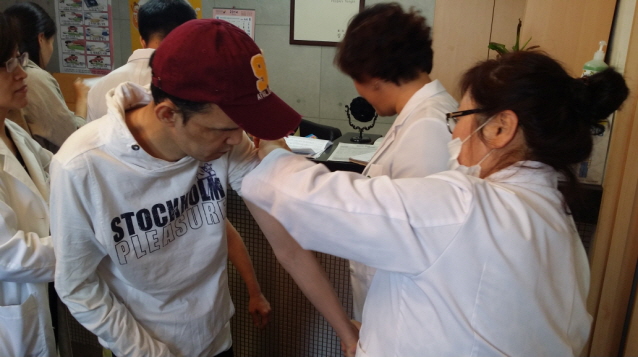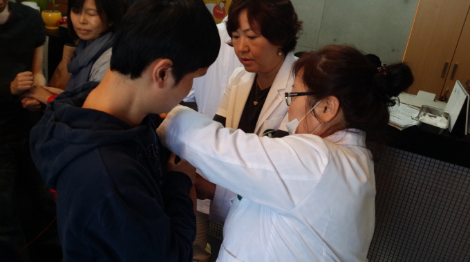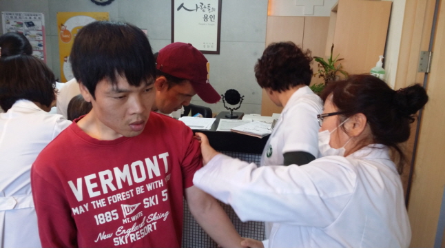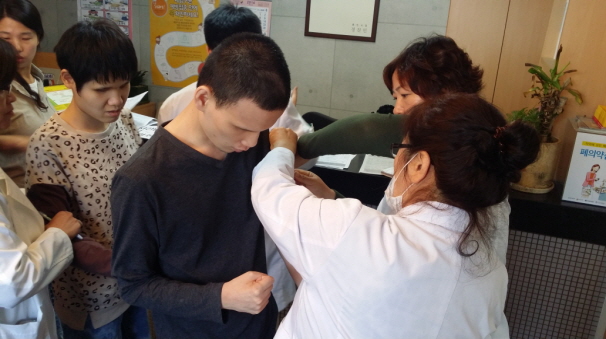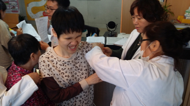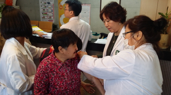 10월 8일 이용인님들 독감예방접종을 하였습니다.  날씨가 서늘해져 감기와 인플루엔자에 걸리시지 않도록 주사한 방에 해결하였습니다. 이용인 여러분 건강하세용. 하하호호 ^^;;