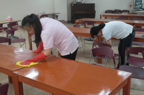 효정에 와서 열심히 청소하고, 이용자님들과 담소를