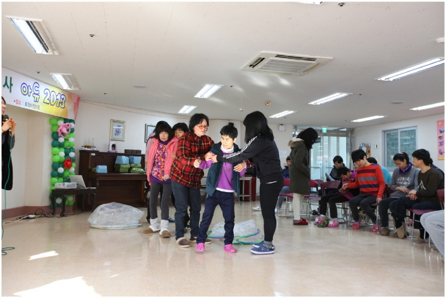 1부행사로는 송년행사 개회식, 이용자 및 직원인사, 원장님 인사말, 2013년 이용자님 프로그램 동영상 시청, 모범 이용자 및 직원 표창장 수여식을 하였고, 2부 행사로는 한 해를 보낸 소감나누기, 이용자님 공연 및 레크레이션, 다 같이 즐기는 게임, 다과 나눔 및 친교, 폐회식 및 행사종료를 하였습니다.