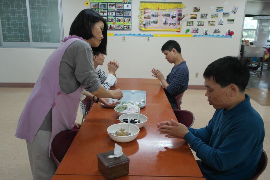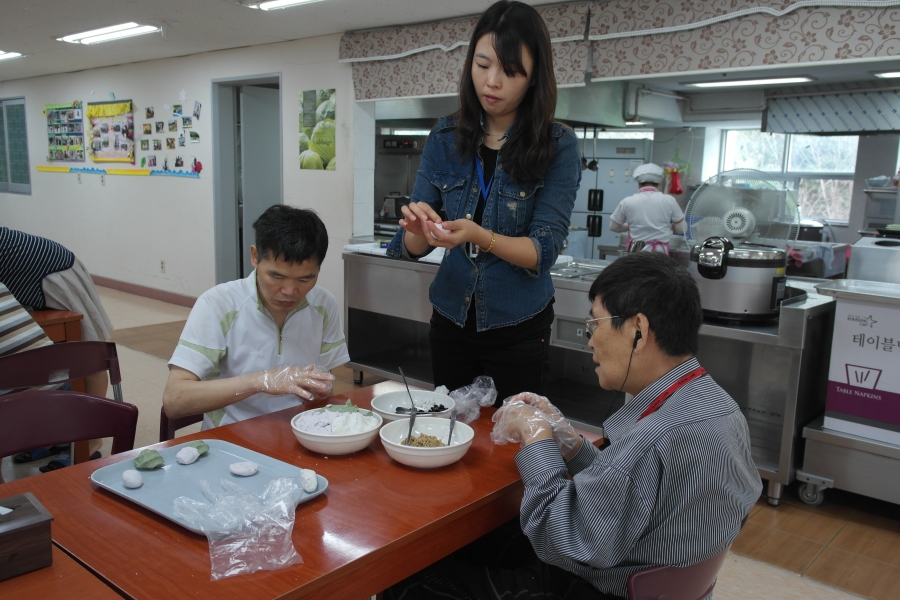 이용자들이 많이 좋아하셨고, 떡만들기 후 노래경연대회를 하였습니다.