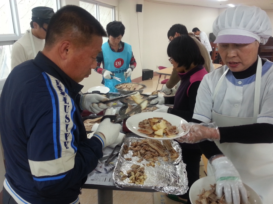 2013. 4. 25 (주) 푸드코리아에서 맛있고, 영양가 좋은 삼겹살을 직접 방문하셔서 조리해주셨습니다. “냠냠” 맛있는 삼겹살은 저희 효정비전타운 저녁식사시간에 이용자분들을 위해 배식하였습니다. 꾸준한 관심과 사랑에 감사 말씀드립니다. ^^