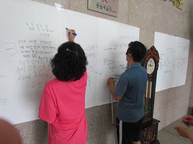 시각체험 중 마지막으로 그 동안 체험을 통한 마음 속의  말을 적는 시간입니다.
