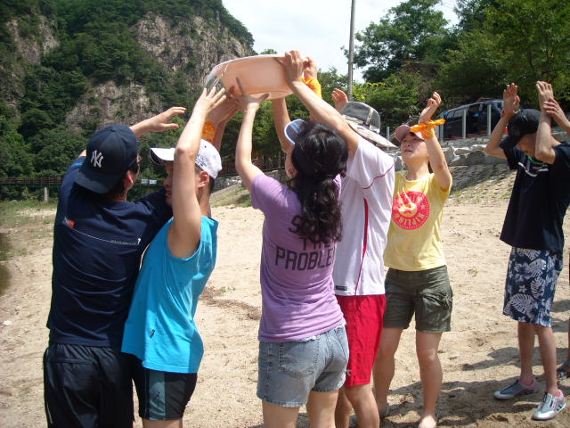손을 올려 물을 나르는 모습인데..다들 물동이만 없더라면 손들고 춤을 추는 모습을 연상시키네요~~즐거운 모습에 다들 흠뻑 빠진 시간입니다.