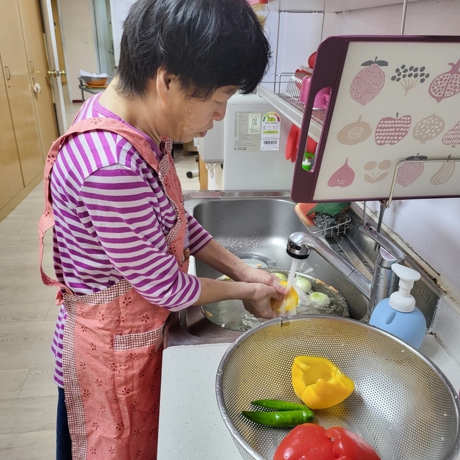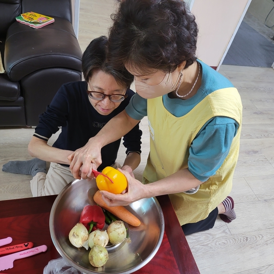 4월 가정식 참여실-에스더실, 메뉴-새우볶음밥 이용인분들이 직접 메뉴를 정하고 재료를 구입, 손질 후 완성한 새우볶음밥은 완성도가 꽤 높아 아~주 꿀맛이었습니다. ^^