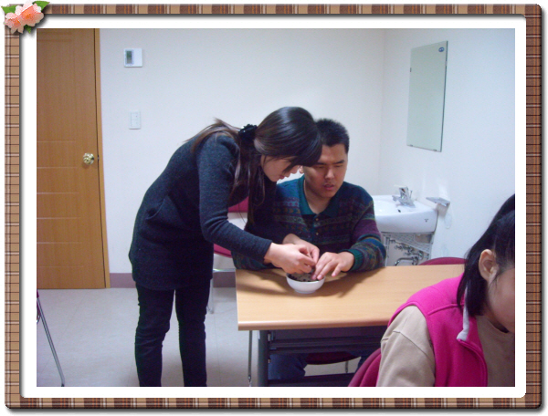 2009년3월5일(목) 전생활자를 대상으로 영양에 대해 교육이 있었습니다. 내가 먹는 음식의 재료를 눈으로 손으로 맛으로 느껴보는 재미있는 시간이였습니다.