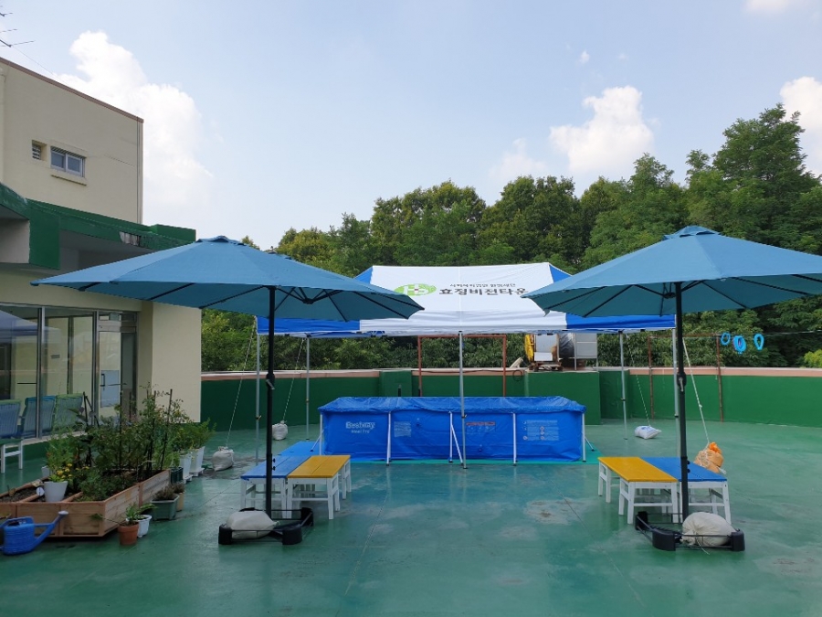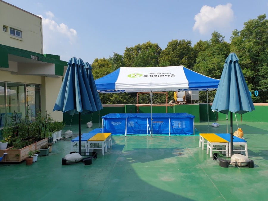 작****회 후원단체가 간이풀장과 테라스를 후원해주셔서 시원한 바닷가 부럽지 않은 효정만의 특별한 피서지를 만들었어요.