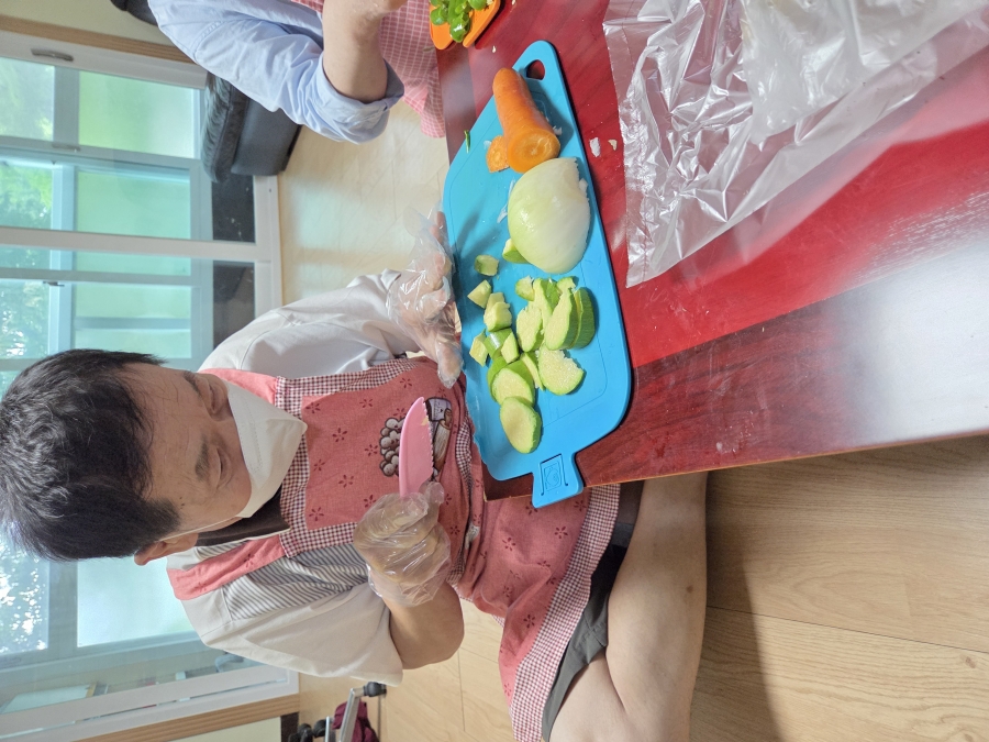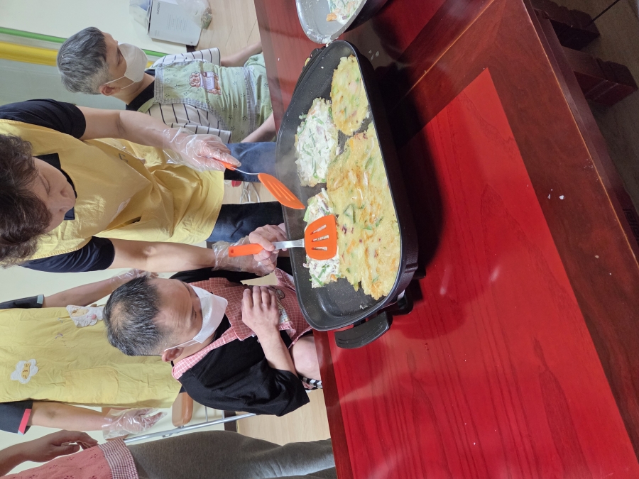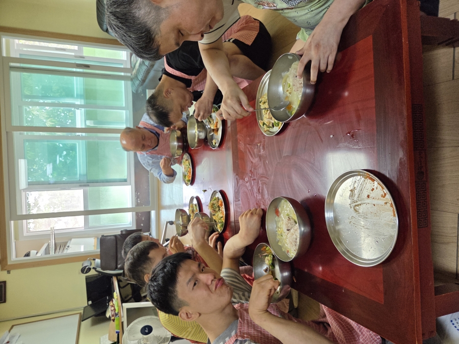 6월 참여실은 다윗실입니다. 가정식메뉴는 수제비,오징어파전,아삭이고추된장무침,김치입니다. 한여름 비오는 날 수제비와 오징어파전은 말해 뭐해요 우리 이용인분들의 탁월한 메뉴선택으로 6월 가정식도 모두가 행복한 시간이었습니다~.