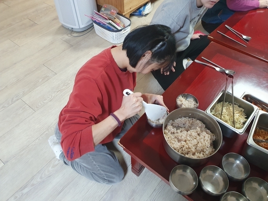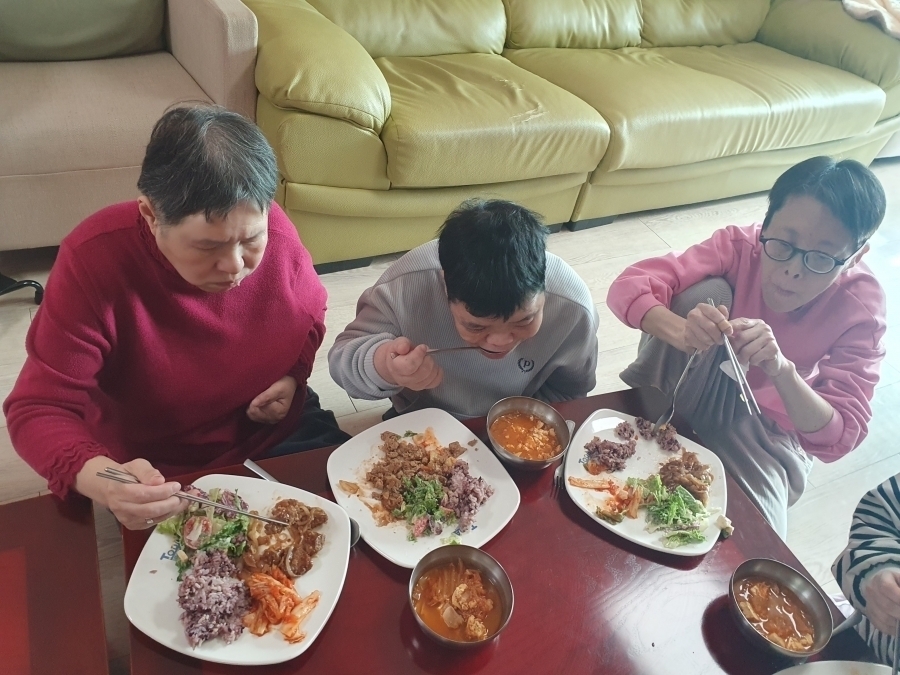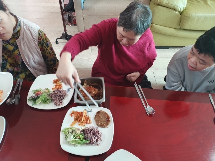 기존 월 1회 진행되었던 가정식이 26년부터 1월부터 진행방법이 변경되었습니다. 각 실별 1회씩 참여로 참여 횟수 증가하였으며, 참여방법 또한 원내 전체메뉴/외부음식/직접조리 중 선택으로 좀 더 다양한 방법으로 진행됩니다. 1월에는 모두 원내 전체메뉴로 진행되었으며 진행 내용은 다음과 같습니다. 1월13일-마리아실(흑미밥,참치캔김치찌개,어니언갈릭함박스테이크,시저샐러드,김치),